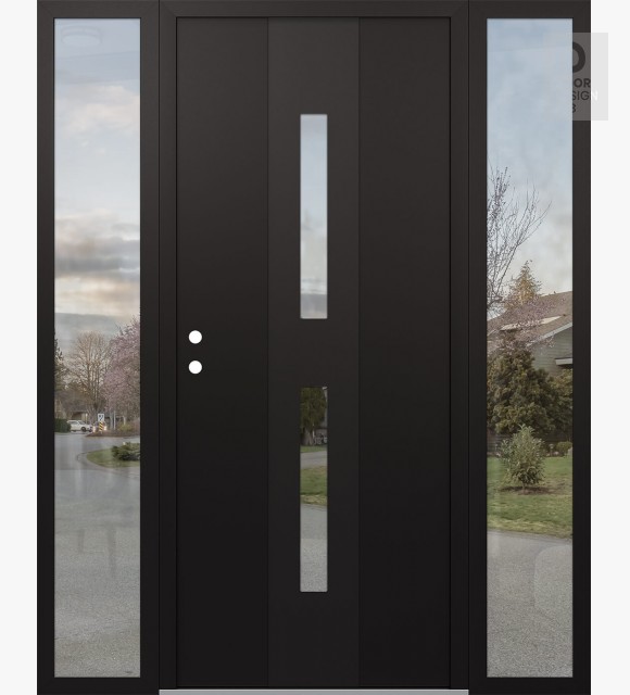 Modern Steel Front Door DIAMOND A6 64" X 80" BLACK/BLACK CLEAR GLASS PANEL BLACK LHI WITH 2 SIDELITES CLEAR GLASS