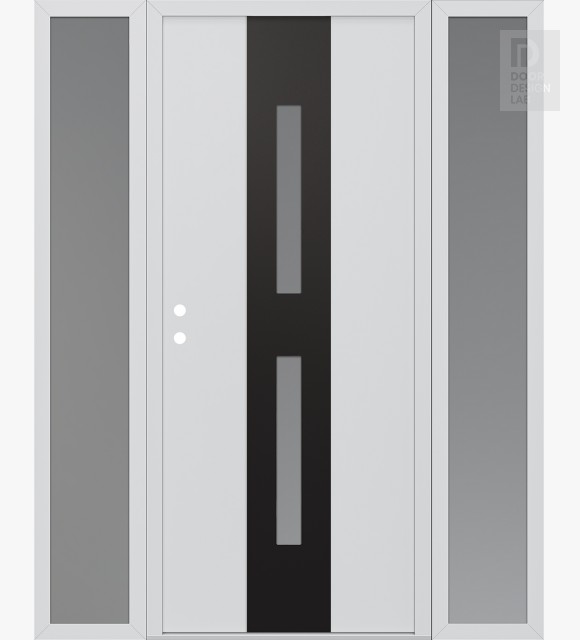 Modern Steel Front Door DIAMOND A6 64" X 80" BLACK/WHITE FROSTED GLASS PANEL BLACK LHI WITH 2 SIDELITES FROSTED GLASS