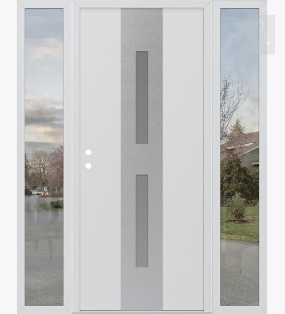 Modern Steel Front Door DIAMOND A6 64" X 80" BLACK/WHITE FROSTED GLASS PANEL STAINLESS STEEL LHI WITH 2 SIDELITES CLEAR GLASS