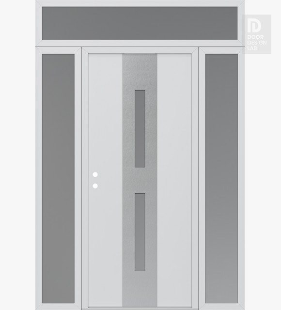 Modern Steel Front Door DIAMOND A6 64" X 96" BLACK/WHITE FROSTED GLASS PANEL STAINLESS STEEL LHI WITH 2 SIDELITES AND TRANSOM FROSTED GLASS