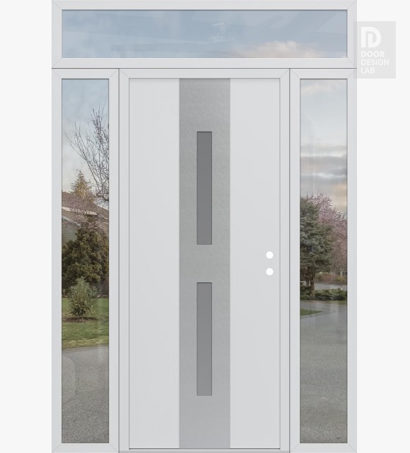 The door unit kit includes a transom and two sidelites, which are decorative stationary sections installed above, to the left and to the right of the exterior door.
