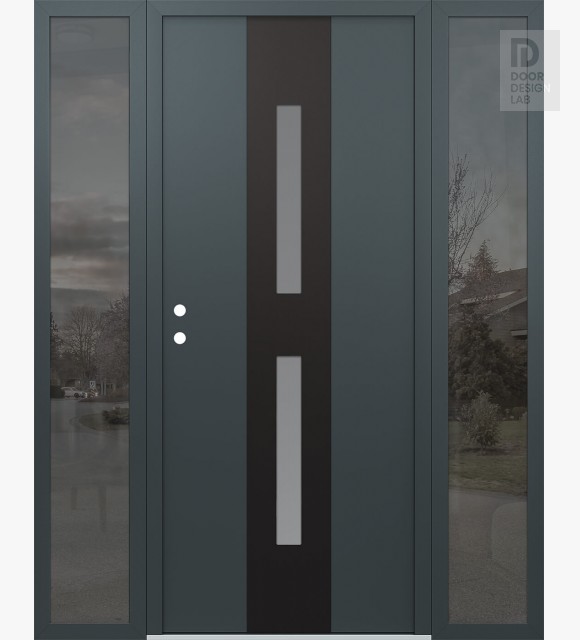 Modern Steel Front Door DIAMOND A6 68" X 80" ANTHRACITE/ANTHRACITE FROSTED GLASS PANEL BLACK LHI WITH 2 SIDELITES MIRRORED GLASS