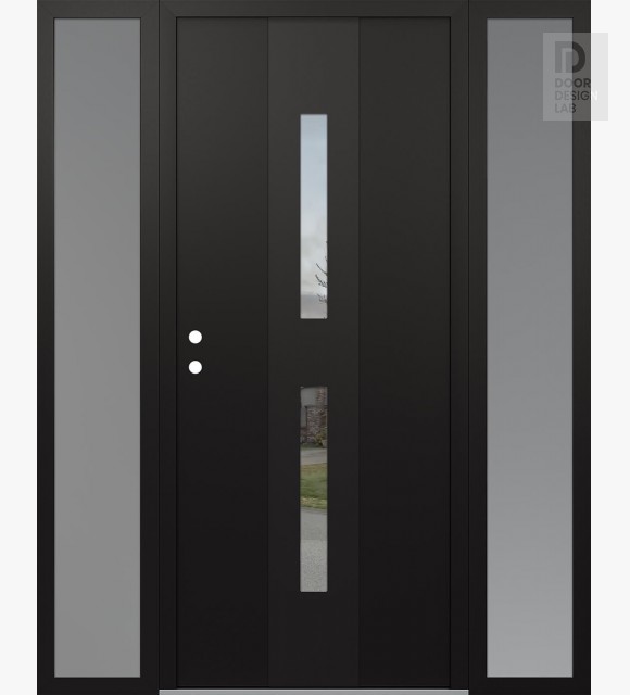 Modern Steel Front Door DIAMOND A6 68" X 80" BLACK/BLACK CLEAR GLASS PANEL BLACK LHI WITH 2 SIDELITES FROSTED GLASS