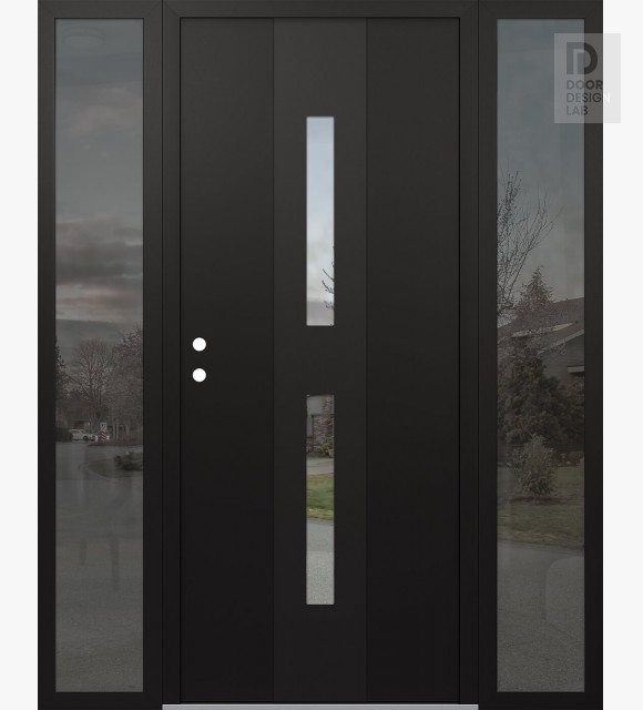 Modern Steel Front Door DIAMOND A6 68" X 80" BLACK/BLACK CLEAR GLASS PANEL BLACK LHI WITH 2 SIDELITES MIRRORED GLASS