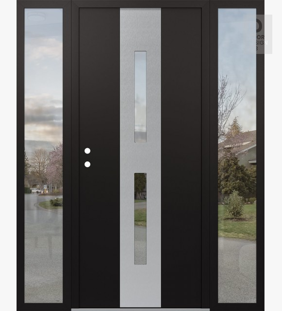 Modern Steel Front Door DIAMOND A6 68" X 80" BLACK/BLACK CLEAR GLASS PANEL STAINLESS STEEL LHI WITH 2 SIDELITES CLEAR GLASS