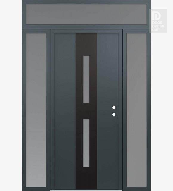 Modern Steel Front Door DIAMOND A6 68" X 96" ANTHRACITE/ANTHRACITE FROSTED GLASS PANEL BLACK RHI WITH 2 SIDELITES AND TRANSOM FROSTED GLASS