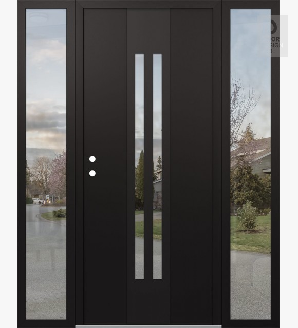 Modern Steel Front Door DIAMOND A8 68" X 80" BLACK/BLACK CLEAR GLASS PANEL BLACK LHI WITH 2 SIDELITES CLEAR GLASS