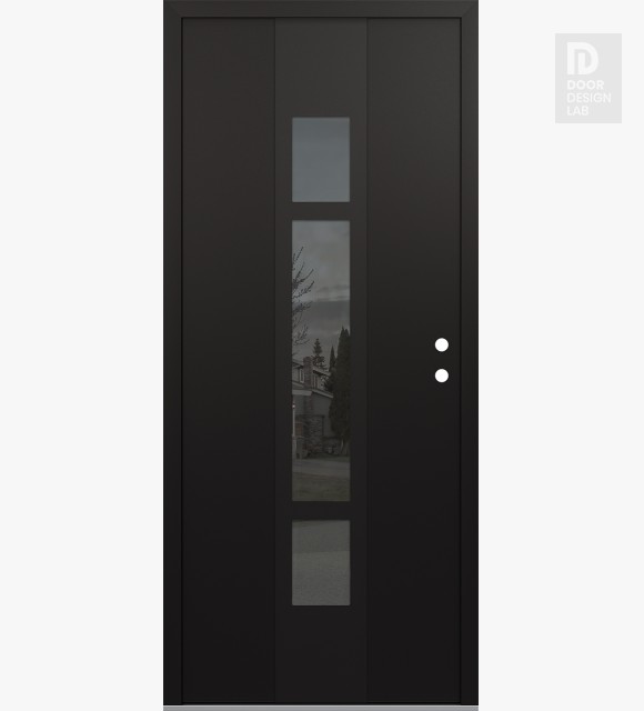 Modern Steel Front Door DIAMOND A9 36" X 80" BLACK/BLACK MIRRORED GLASS PANEL BLACK RHI