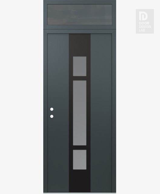 Modern Steel Front Door DIAMOND A9 36" X 96" ANTHRACITE/ANTHRACITE FROSTED GLASS PANEL BLACK LHI WITH TRANSOM MIRRORED GLASS