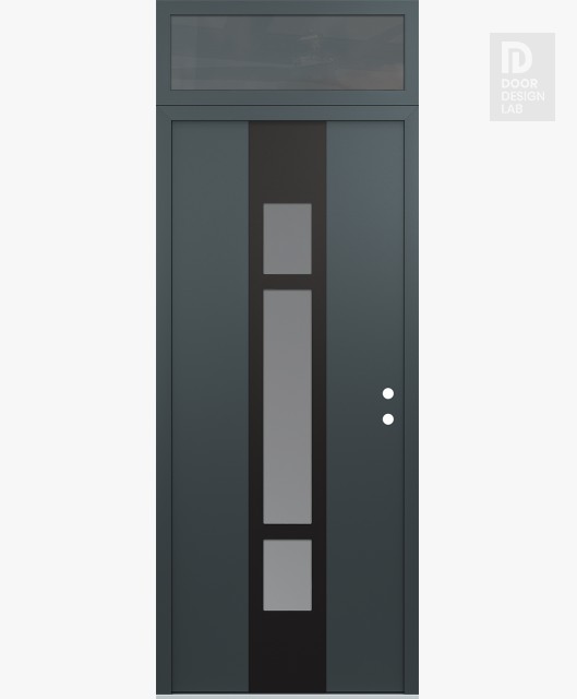 Modern Steel Front Door DIAMOND A9 36" X 96" ANTHRACITE/ANTHRACITE FROSTED GLASS PANEL BLACK RHI WITH TRANSOM MIRRORED GLASS