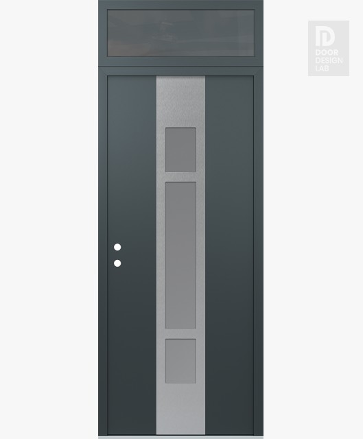 Modern Steel Front Door DIAMOND A9 36" X 96" ANTHRACITE/ANTHRACITE FROSTED GLASS PANEL STAINLESS STEEL LHI WITH TRANSOM MIRRORED GLASS