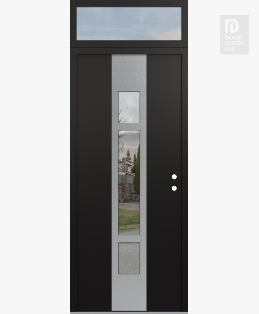 Modern Steel Front Door DIAMOND A9 36" X 96" BLACK/BLACK CLEAR GLASS PANEL STAINLESS STEEL RHI WITH TRANSOM CLEAR GLASS