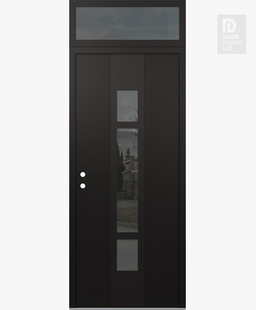 Modern Steel Front Door DIAMOND A9 36" X 96" BLACK/BLACK MIRRORED GLASS PANEL BLACK LHI WITH TRANSOM MIRRORED GLASS
