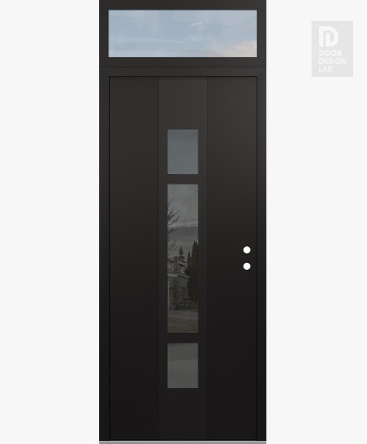 Modern Steel Front Door DIAMOND A9 36" X 96" BLACK/BLACK MIRRORED GLASS PANEL BLACK RHI WITH TRANSOM CLEAR GLASS