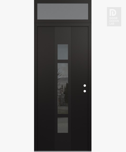 Modern Steel Front Door DIAMOND A9 36" X 96" BLACK/BLACK MIRRORED GLASS PANEL BLACK RHI WITH TRANSOM FROSTED GLASS
