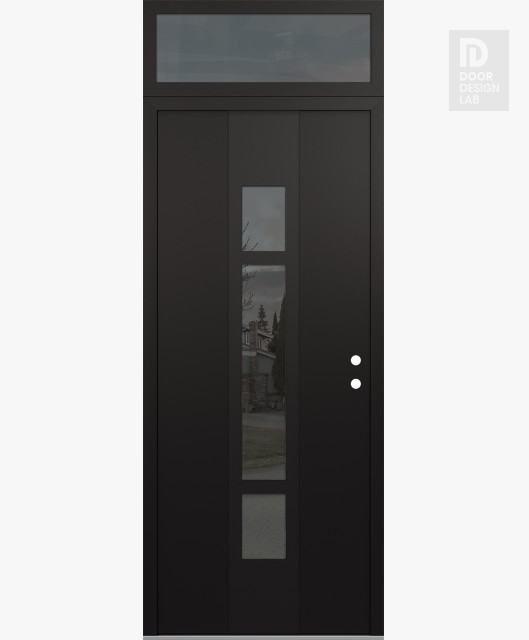 Modern Steel Front Door DIAMOND A9 36" X 96" BLACK/BLACK MIRRORED GLASS PANEL BLACK RHI WITH TRANSOM MIRRORED GLASS