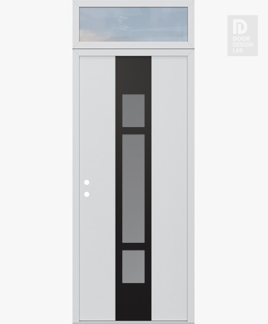 Modern Steel Front Door DIAMOND A9 36" X 96" BLACK/WHITE FROSTED GLASS PANEL BLACK LHI WITH TRANSOM CLEAR GLASS