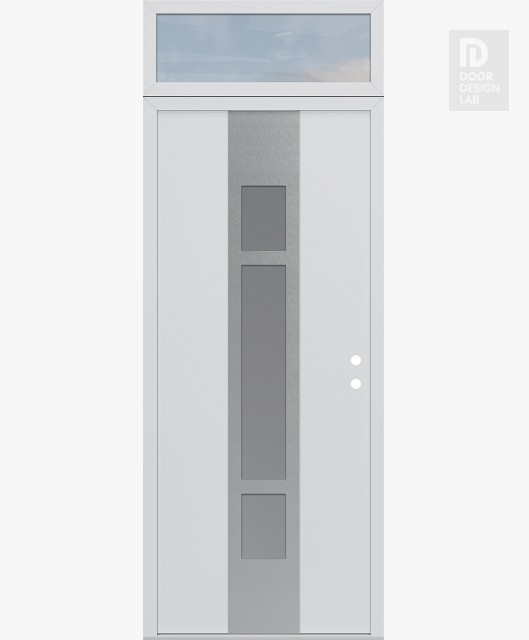 Modern Steel Front Door DIAMOND A9 36" X 96" BLACK/WHITE FROSTED GLASS PANEL STAINLESS STEEL RHI WITH TRANSOM CLEAR GLASS