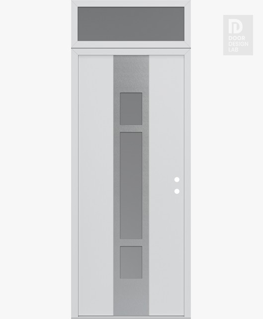 Modern Steel Front Door DIAMOND A9 36" X 96" BLACK/WHITE FROSTED GLASS PANEL STAINLESS STEEL RHI WITH TRANSOM FROSTED GLASS