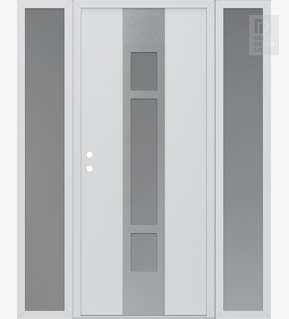 Modern Steel Front Door DIAMOND A9 60" X 80" BLACK/WHITE FROSTED GLASS PANEL STAINLESS STEEL LHI WITH 2 SIDELITES FROSTED GLASS