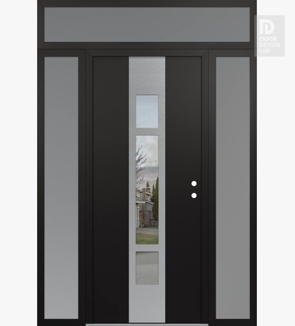 Diamond C3 50" x 80" black/white frosted Glass Panel stainless steel LHI with Sidelite frosted Glass