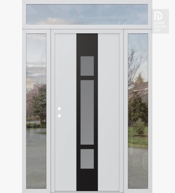 Diamond C13 60" x 80" black/white frosted Glass Panel black RHI with 2 Sidelites frosted Glass