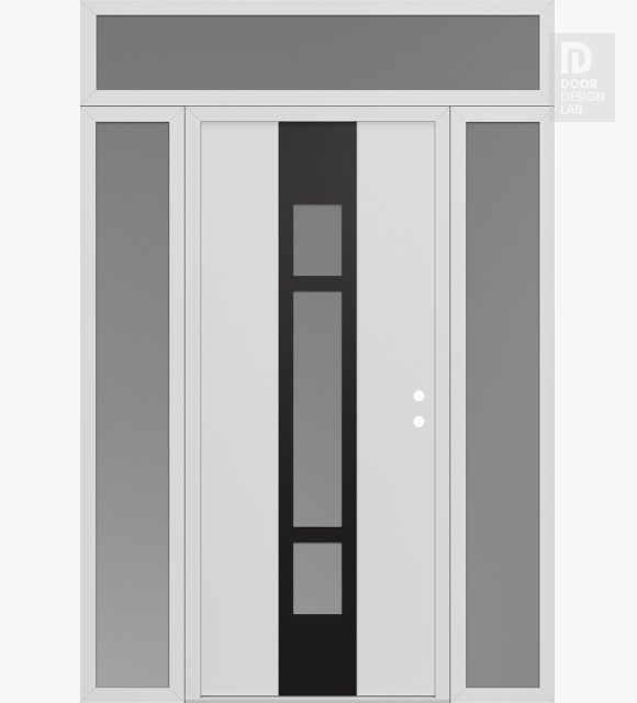 Modern Steel Front Door DIAMOND A9 60" X 96" BLACK/WHITE FROSTED GLASS PANEL BLACK RHI WITH 2 SIDELITES AND TRANSOM FROSTED GLASS