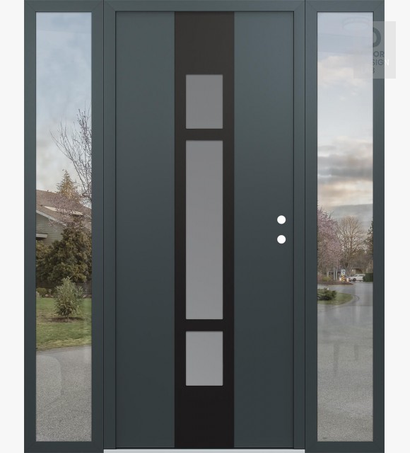 Modern Steel Front Door DIAMOND A9 64" X 80" ANTHRACITE/ANTHRACITE FROSTED GLASS PANEL BLACK RHI WITH 2 SIDELITES CLEAR GLASS