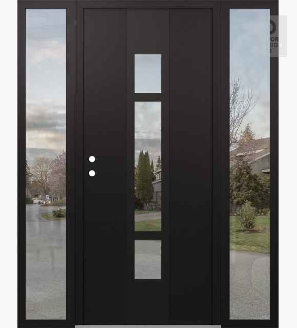 Modern Steel Front Door DIAMOND A9 68" X 80" BLACK/BLACK CLEAR GLASS PANEL BLACK LHI WITH 2 SIDELITES CLEAR GLASS