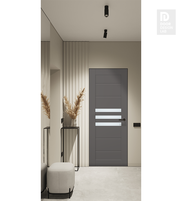 Modern design: the harmonious appearance of the Dome Vetro is formed by the combination of strict lines, three narrow glass inserts, and an elegant shade. A glazed door is a functional piece of furniture that fills the room with natural light and a timeless interior design trend so that this model will remain relevant for years.