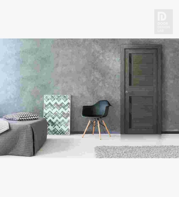 Modern Interior DOOR SLAB ESTA BL VETRO GRAY OAK 30" X 84" X 1 9/16" BLACK GLASS