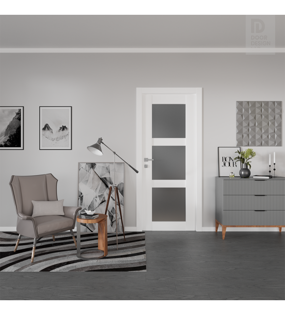 Modern Interior DOOR SLAB PALLADIO 3 LITE VETRO BIANCO NOBLE 32" X 84" X 1 9/16" TEMPERED FROSTED GLASS