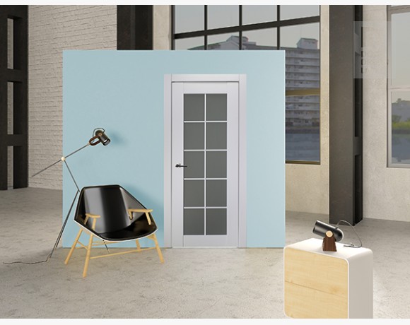 Modern Interior DOOR SLAB SMART PRO 10 LITE VETRO POLAR WHITE 24" X 80" X 1 3/4" TEMPERED FROSTED GLASS