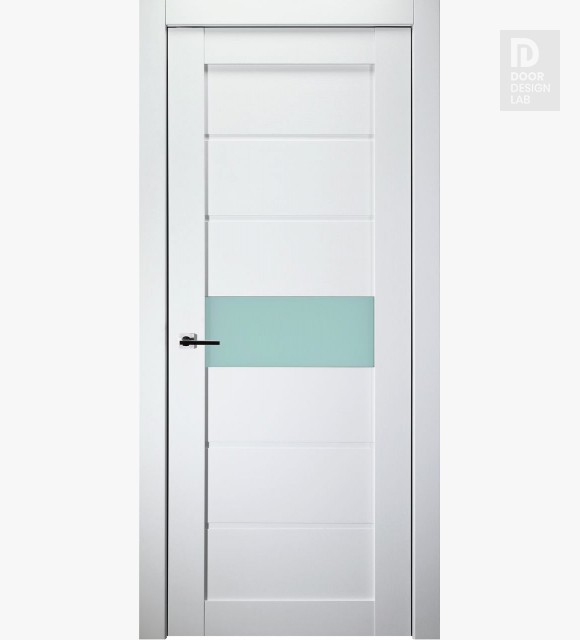 Edna Vetro is a fine example of modern style. It is developed from 2 panels with 2 carved horizontal grooves which are divided by a beautiful central lite of 9 1/8" width. Door design is strengthened by vertical stiles, top and bottom rails. Panels are made from MDF to provide privacy and reduce sound transmission through your home. Engineered stiles and rails inside the pine frame create strong and sturdy door. White frosted glass has a surface with decorative translucent frost. It allows light to filter into the room but saves your privacy.