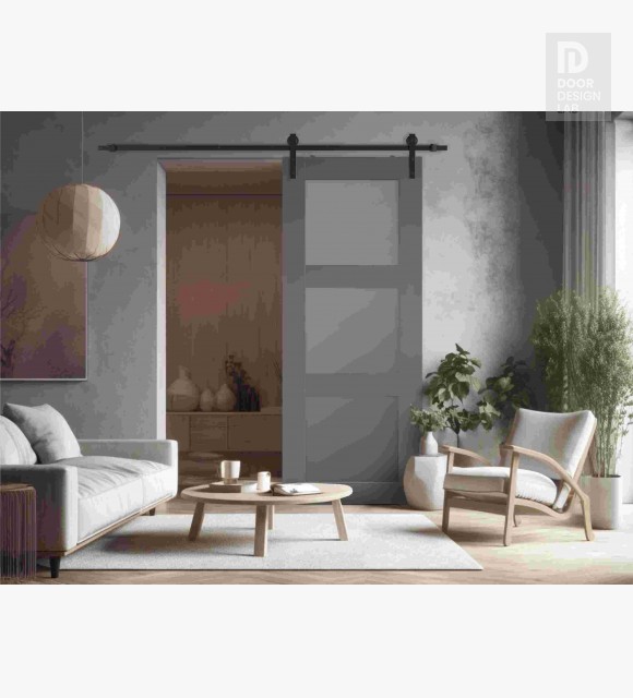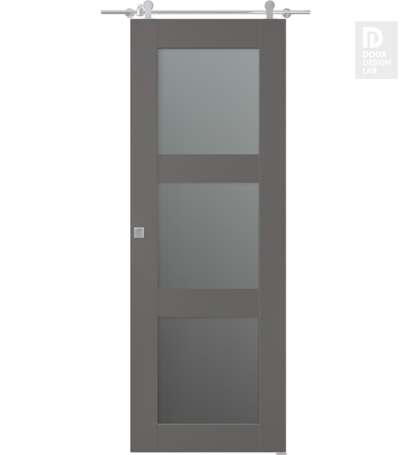 Avon 3 Lite Vetro Gray Matte Modern Interior Barn Door by Belldinni