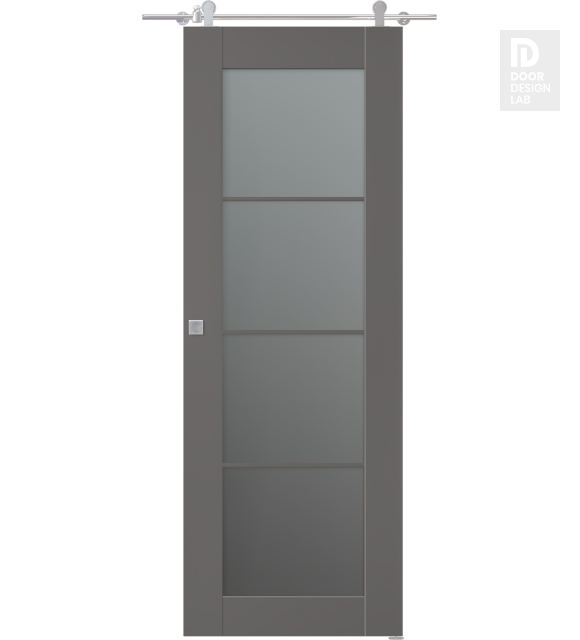 Avon 4 Lite Vetro Gray Matte Modern Interior Barn Door by Belldinni