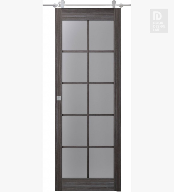 Palladio 10 Lite Vetro Gray Oak Modern Interior Barn Door by Belldinni