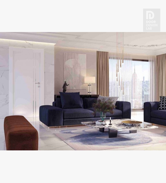 Modern design: Smart Pro 2V attracts attention with its extreme minimalism, which emphasizes the high quality of craftsmanship. Pure Flush construction will favorably highlight the advantages of the surrounding interior while remaining a self-sufficient and striking element of home design. The distinctive feature of this interior door model is the two vertical shiny aluminum strips that create an elegant visual effect, enhancing the hardware's beauty.
