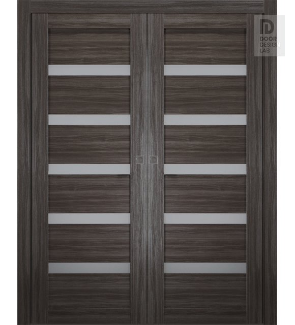 Leora Vetro Gray Oak Modern Interior Double Pocket Doors by Belldinni