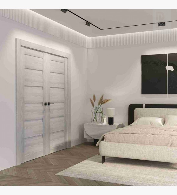 Louver Ribeira Ash Modern Interior Double Swing Doors by Belldinni