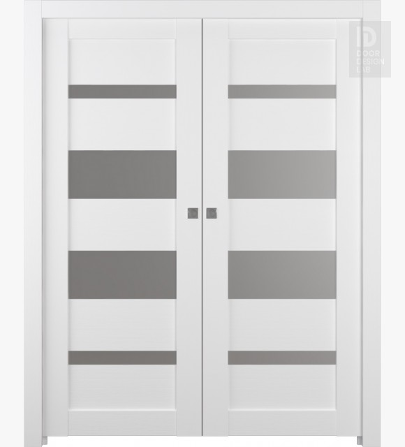 Mirella Vetro Bianco Noble Modern Interior Double Pocket Doors by Belldinni