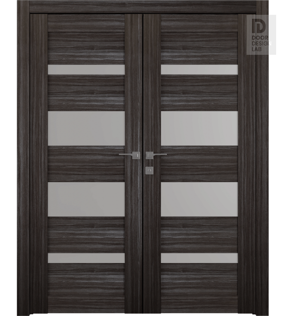Mirella Vetro Gray Oak Modern Interior Double Swing Doors by Belldinni