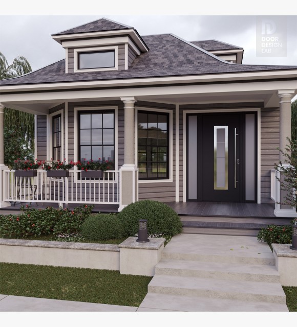 MODERN FRONT STEEL DOOR ARGOS BLACK/WHITE 49 1/4" X 95 11/16" LHI + SIDELITE LEFT/TRANSOM