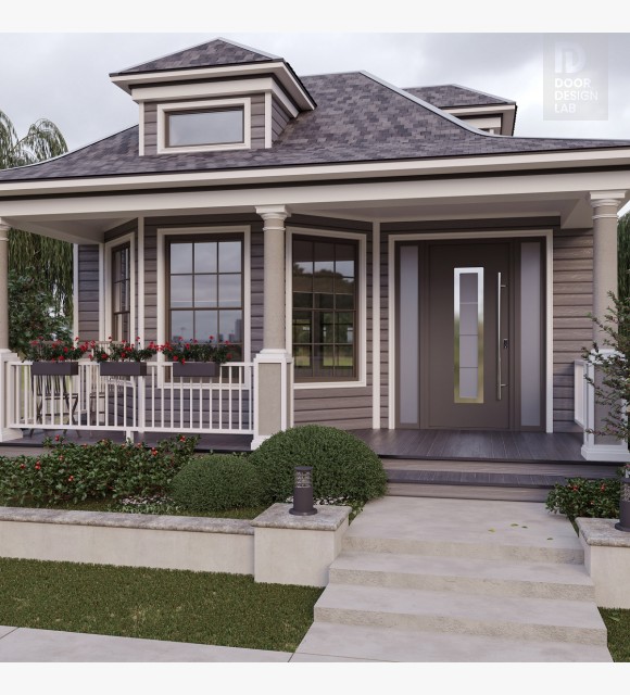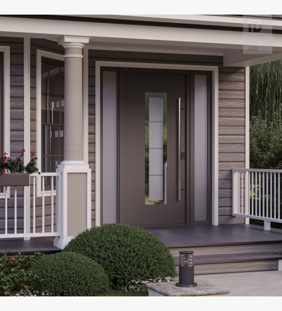 MODERN FRONT STEEL DOOR ARGOS BROWN/WHITE 61 1/16" X 95 11/16" LHI + SIDELITE LEFT/RIGHT + TRANSOM