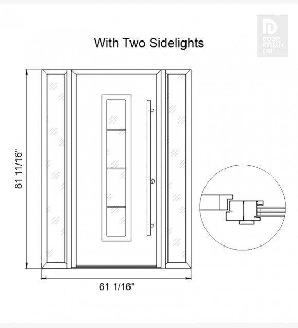 MODERN FRONT STEEL DOOR AURA ANTRACIT/WHITE 49 1/4" X 95 11/16" RHI + SIDELITE LEFT/TRANSOM
