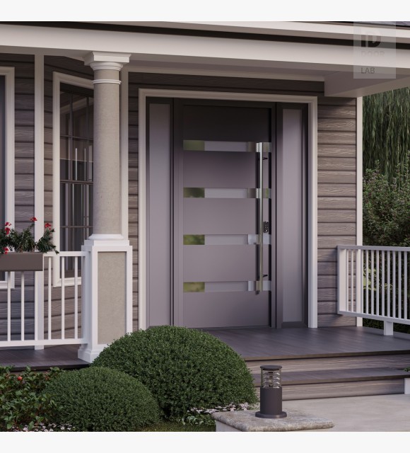 MODERN FRONT STEEL DOOR AURA ANTRACIT/WHITE 61 1/16" X 95 11/16" LHI + SIDELITE LEFT/RIGHT + TRANSOM