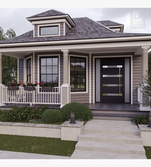 MODERN FRONT STEEL DOOR AURA BLACK/WHITE 49 1/4" X 95 11/16" LHI + SIDELITE LEFT/TRANSOM