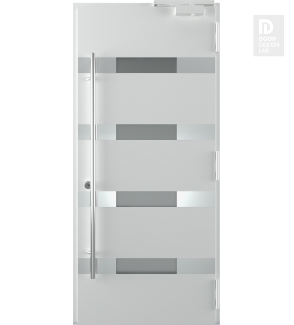 Translucent frosted glass is a triple-sealed unit with two chambers: it is tempered on both sides and has silkscreen printing using ceramic inks.