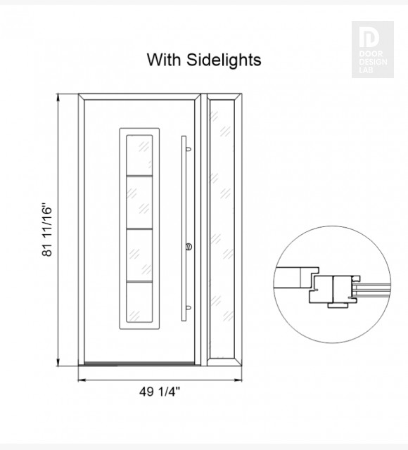 MODERN FRONT STEEL DOOR ZEPHYR BLACK/WHITE 49 1/4" X 81 11/16" LHI + SIDELITE RIGHT