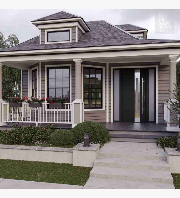 MODERN FRONT STEEL DOOR ZEPHYR BLACK/WHITE 49 1/4" X 81 11/16" RHI + SIDELITE LEFT